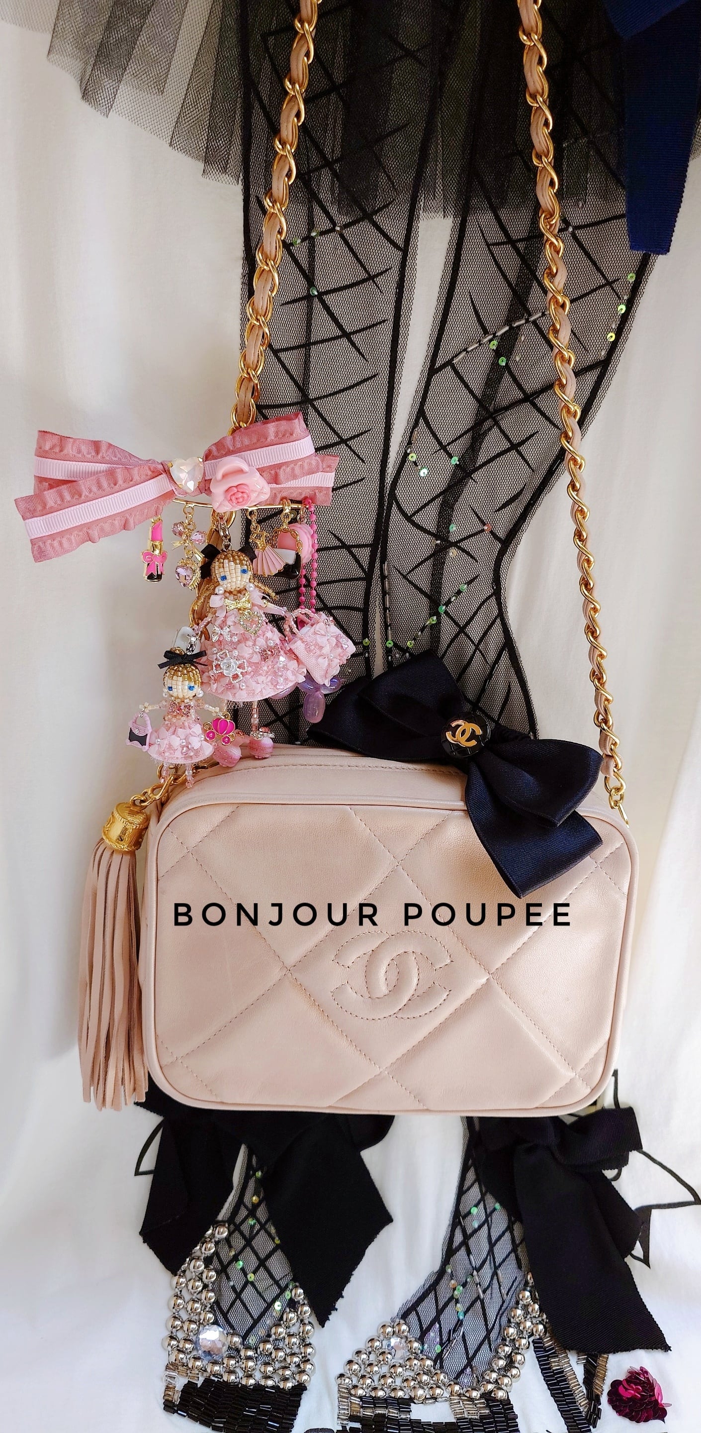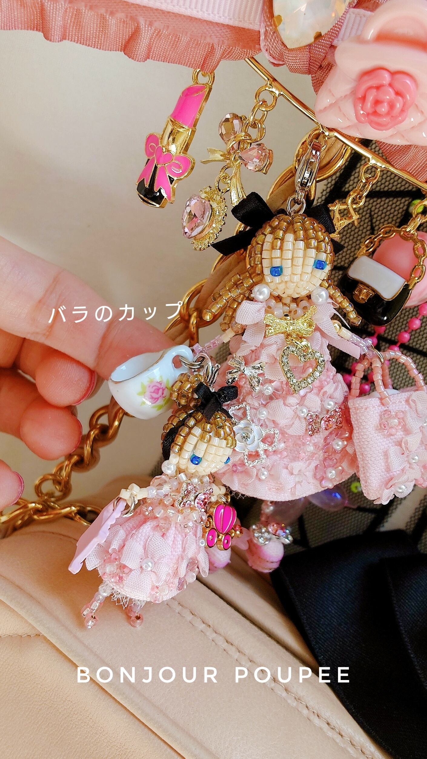 ③ ピンクフラワーローズちゃん本体は、取り外し可能です。そのほかピンクの風船のプードルさんも取り外し可能なパーツです。プードルを外すと大人っぽいお出掛けに、付けるとBonjour poupeeらしい華やかなお出掛けが楽しめます。