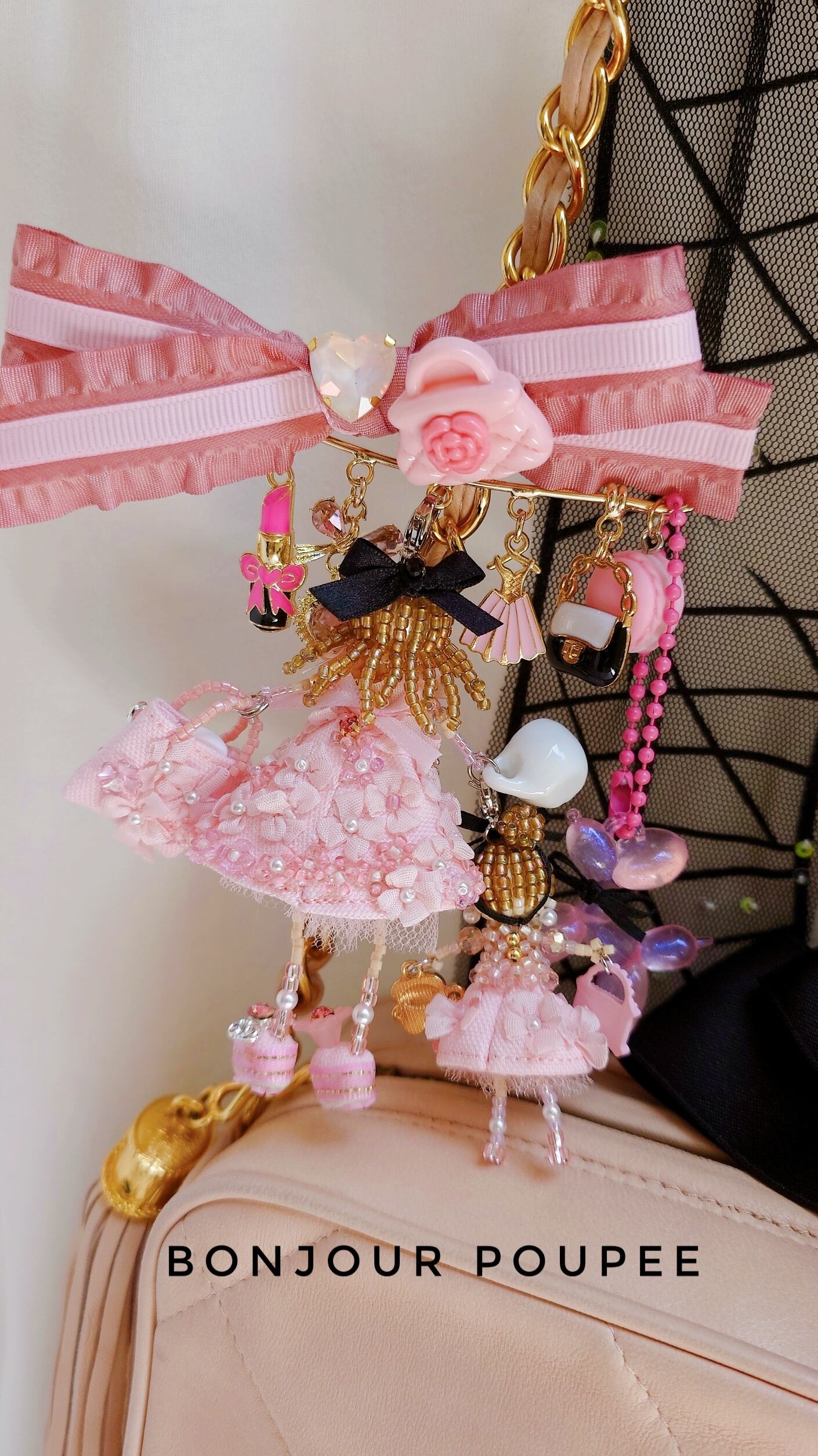 ブローチピンのリボンに付いているピンクのBagはブローチ仕立てです♡お好きなアレンジを楽しむことができます。あなたの個性を引き立てる素敵なアクセサリーです。