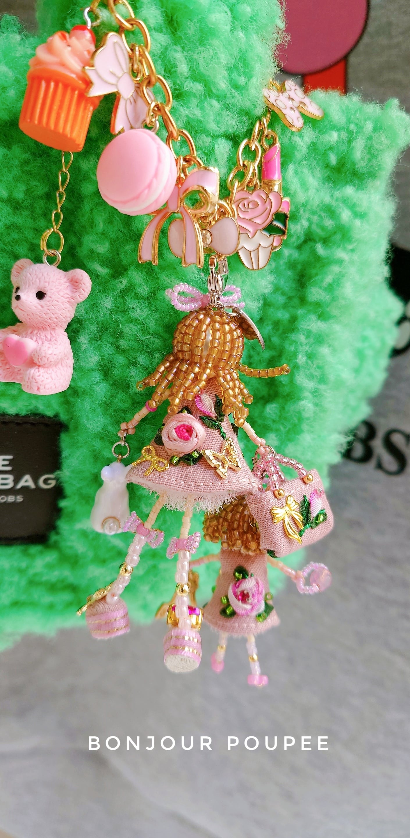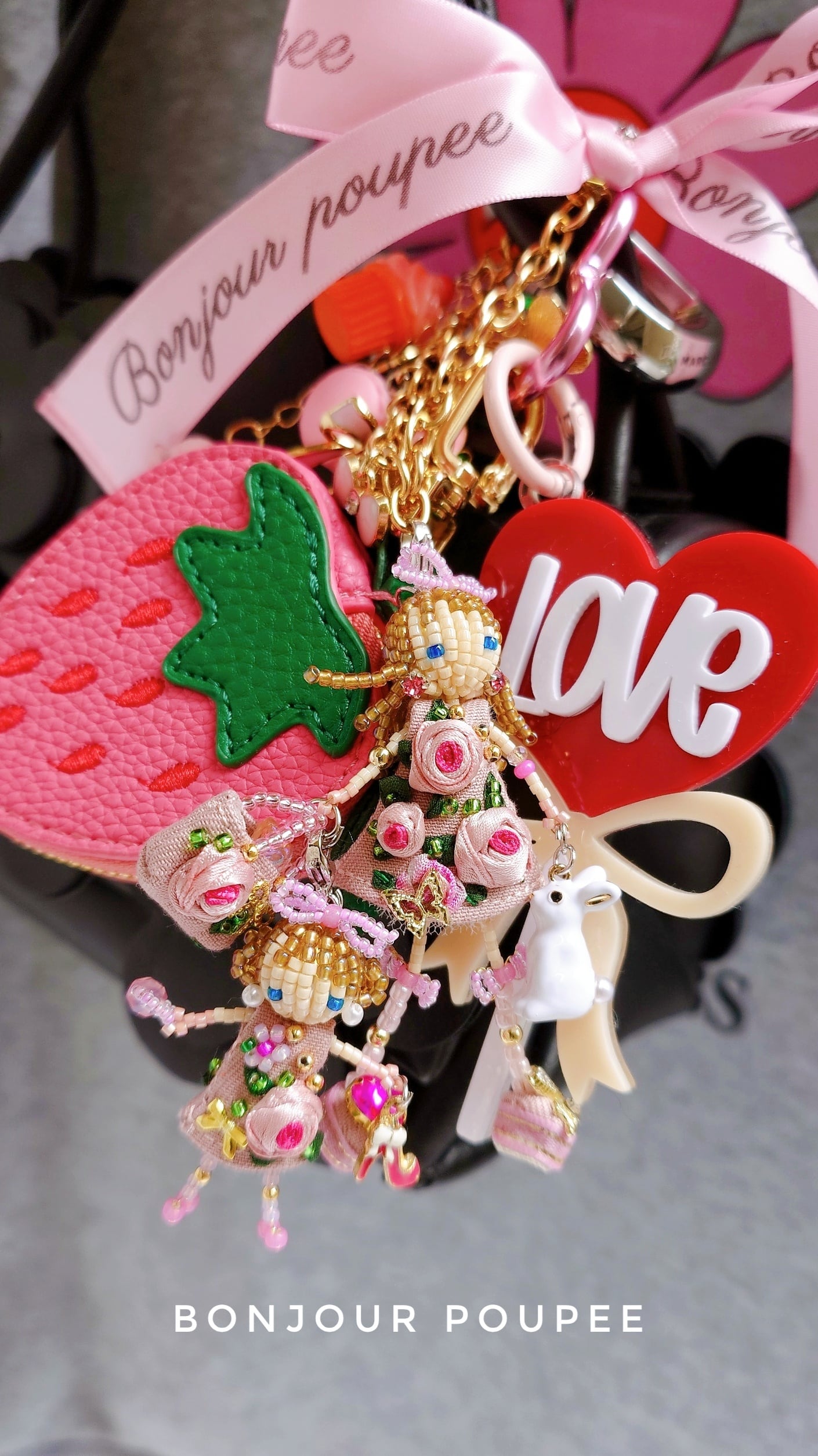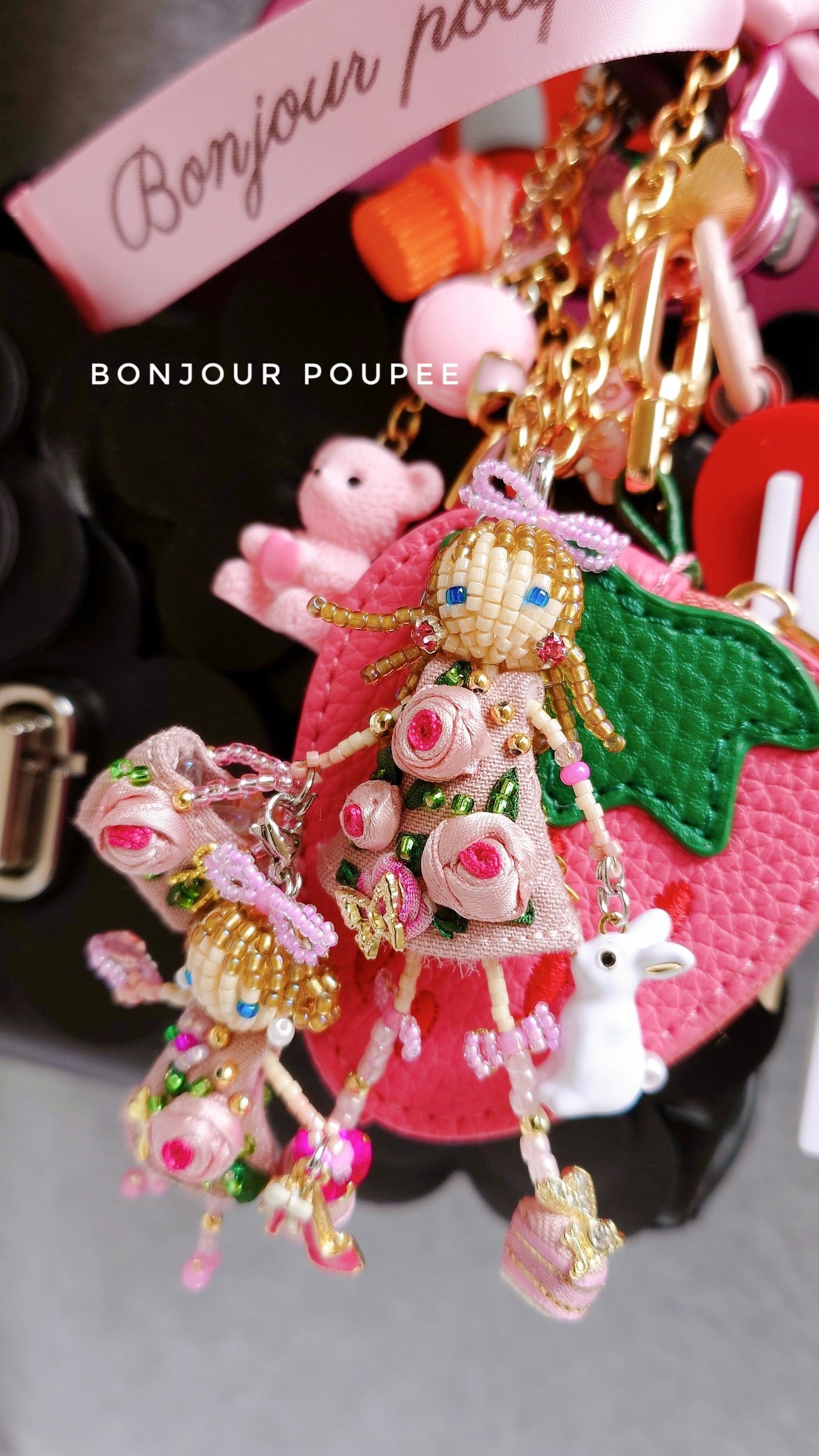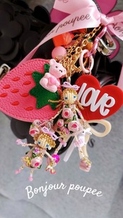 ぷっくりPinkRoseコサージュドレスを着た親子のマドモアゼルMyカスタムBagチャーム♡