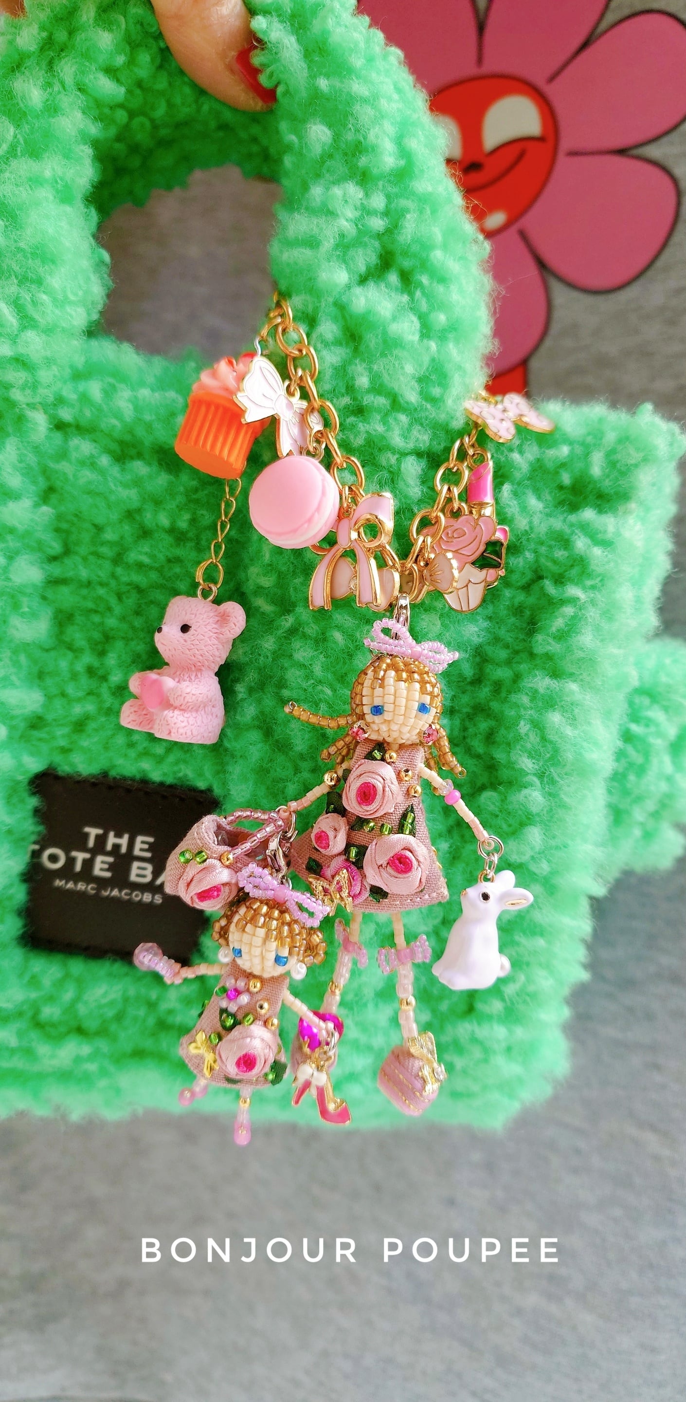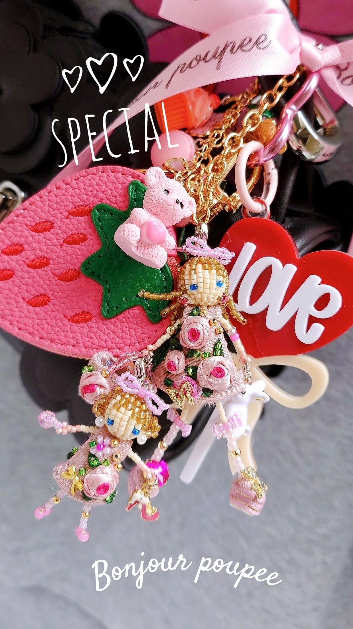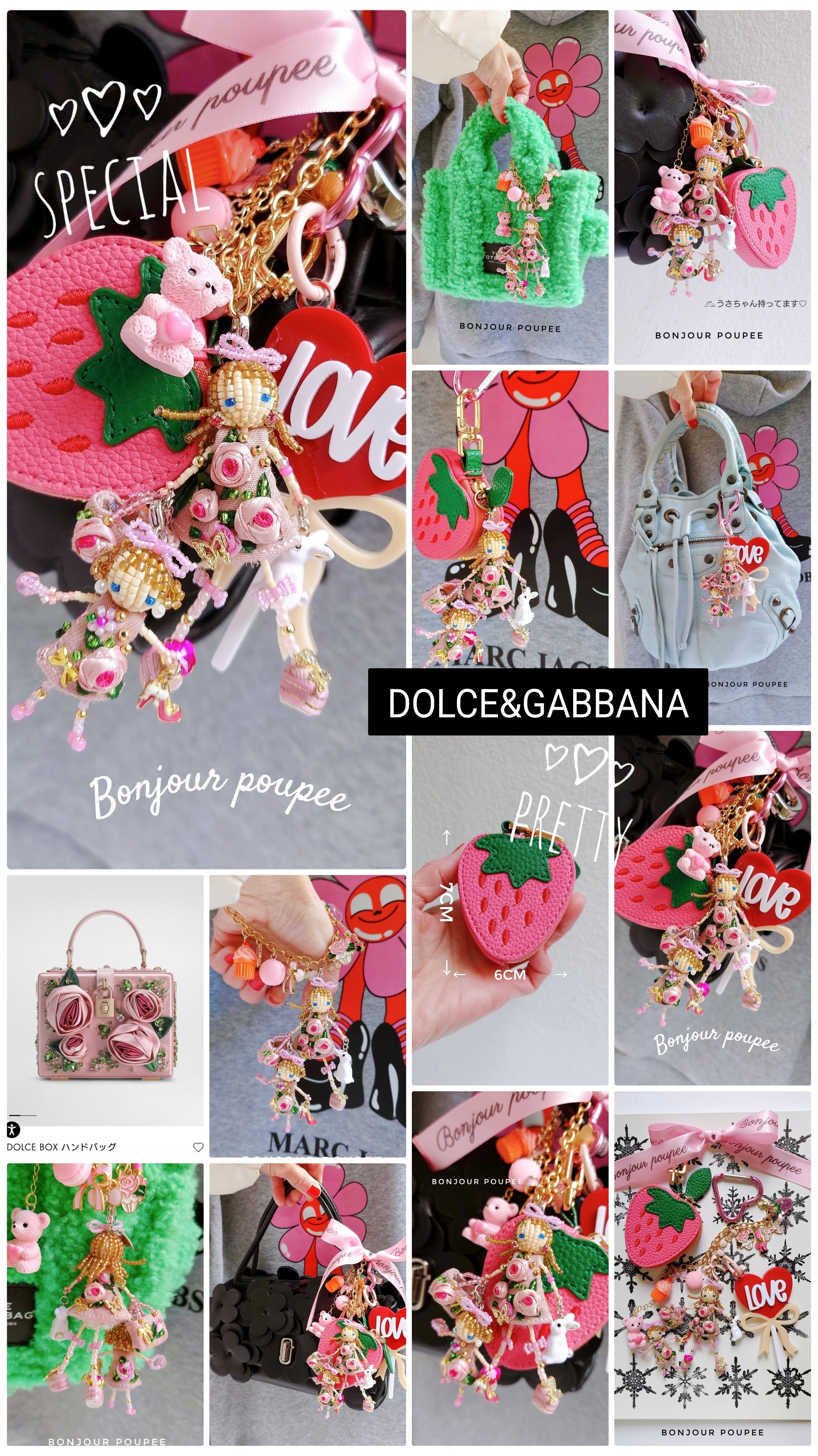 ぷっくりPinkRoseコサージュドレスを着た親子のマドモアゼルMyカスタムBagチャーム♡