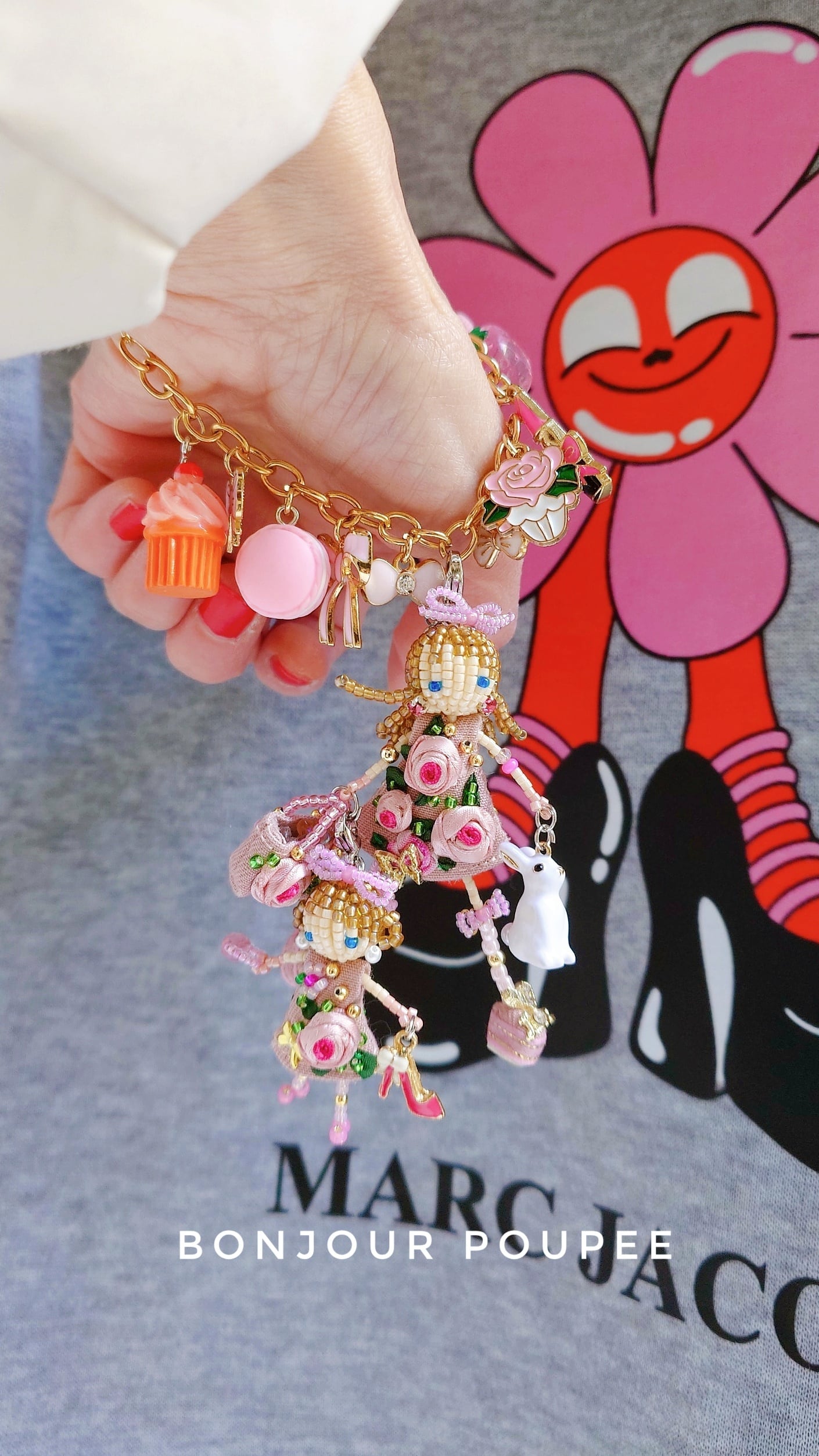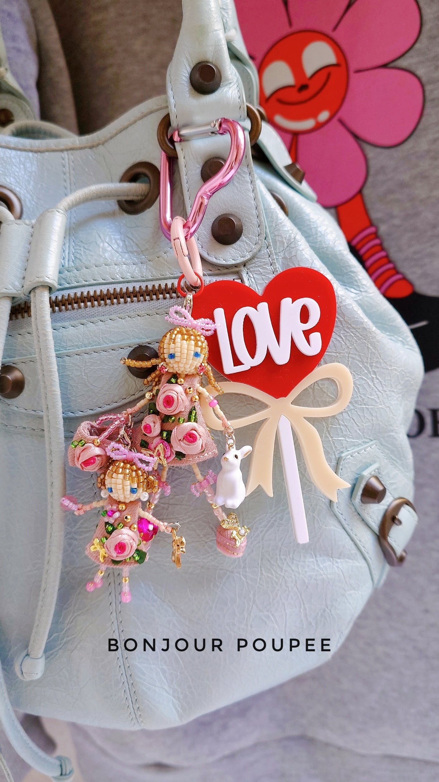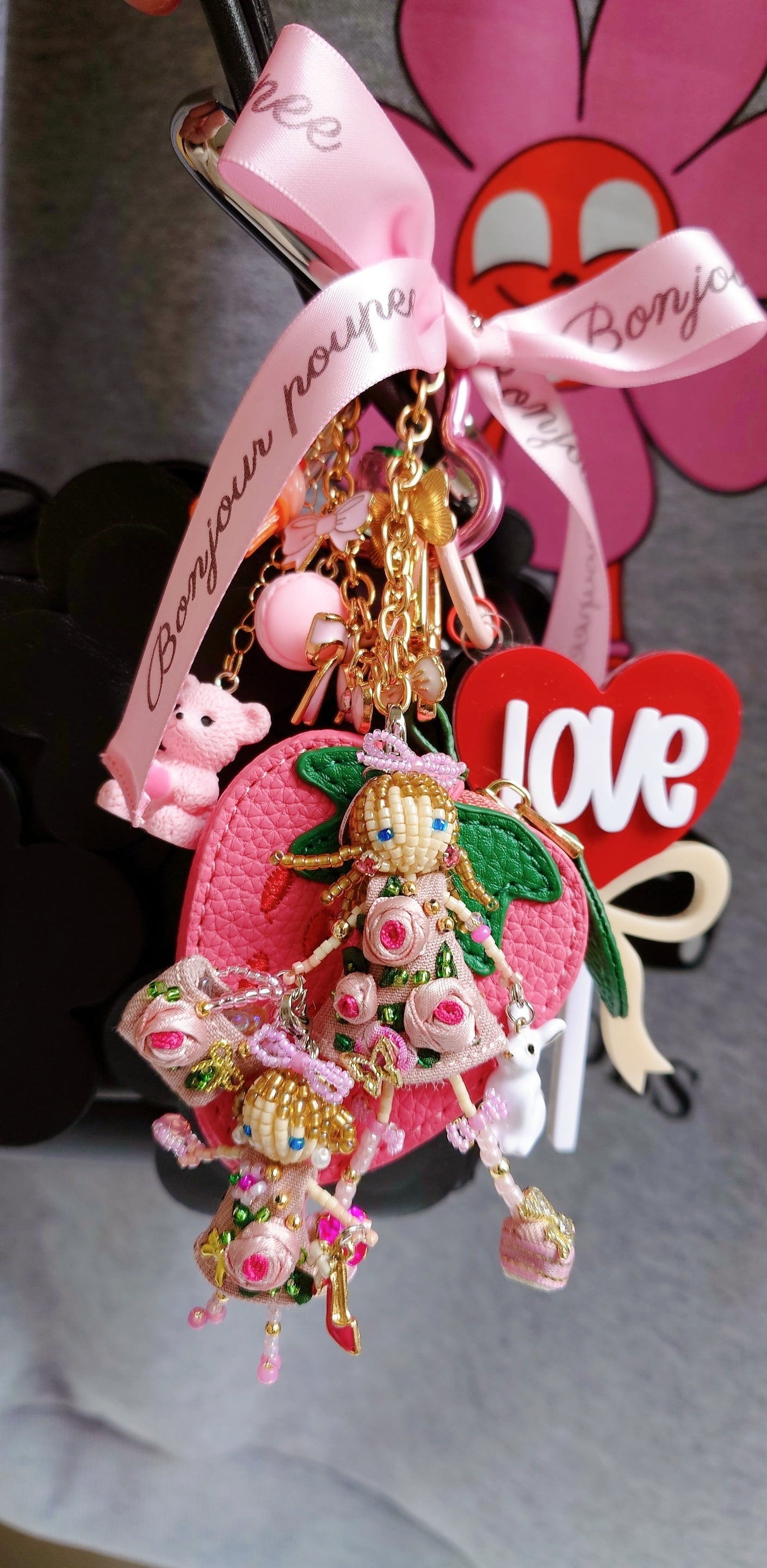 4.大ぶりのチャームはピンクローズちゃん親子に似合うようにカスタマイズして作りました♡