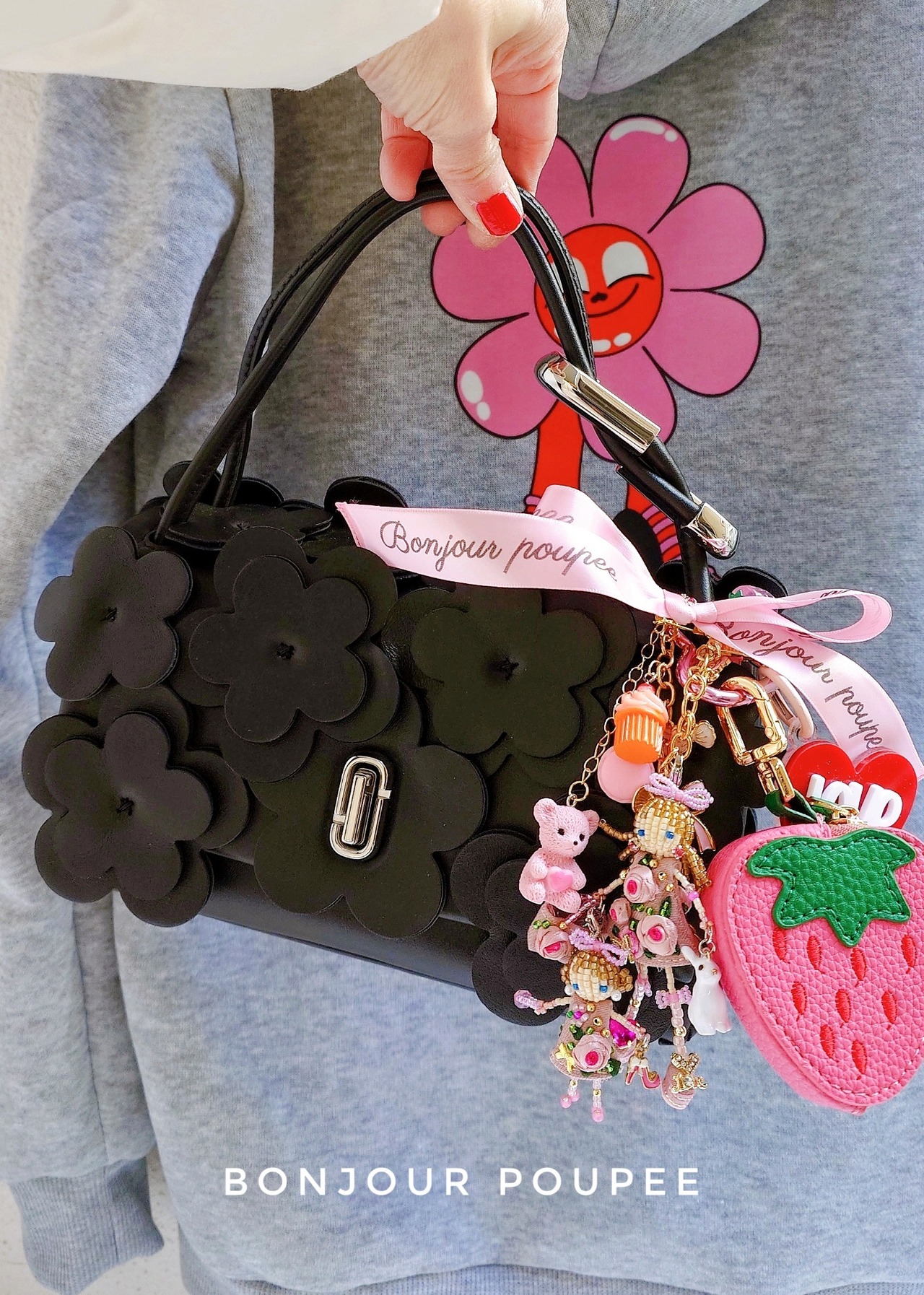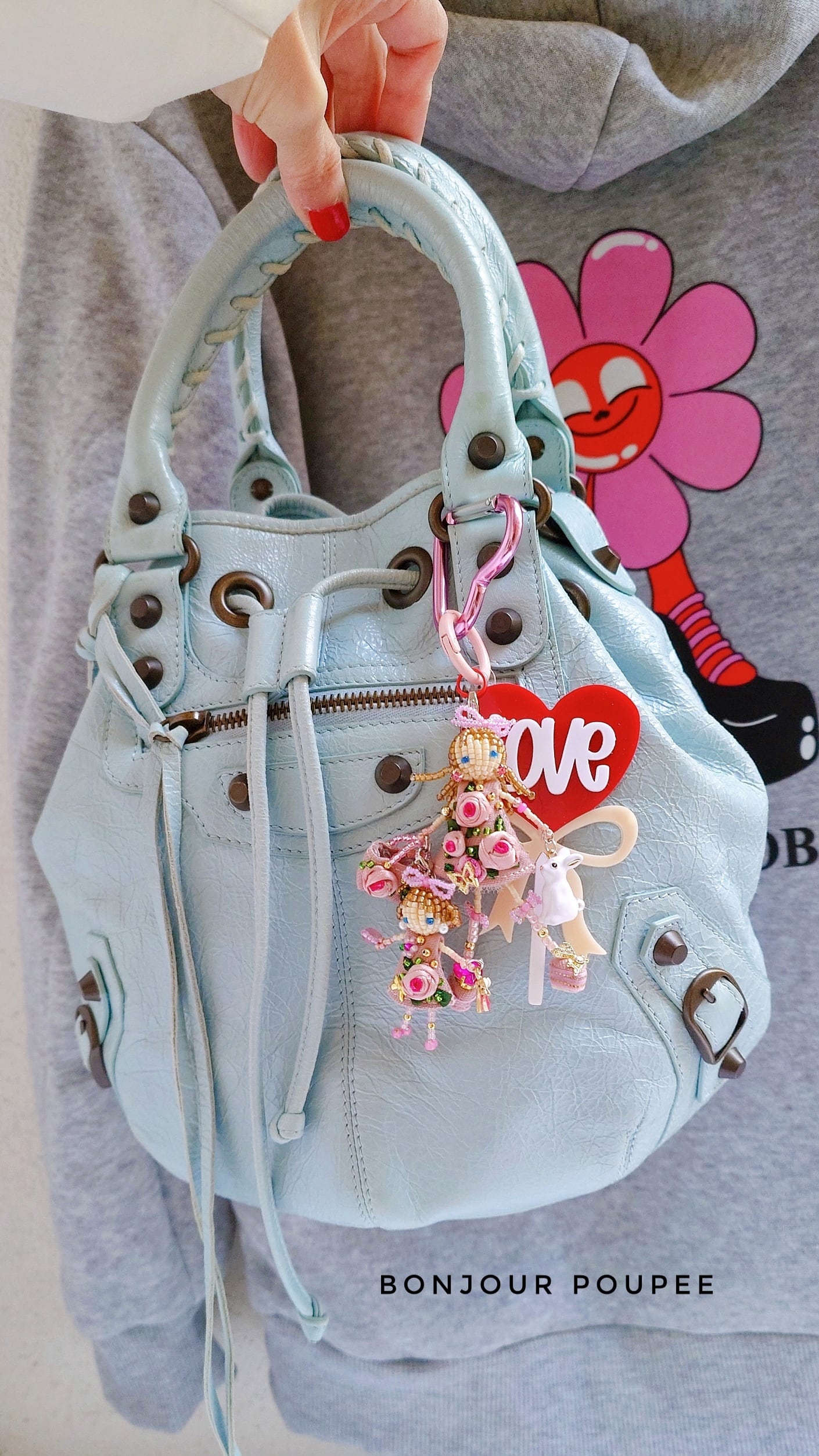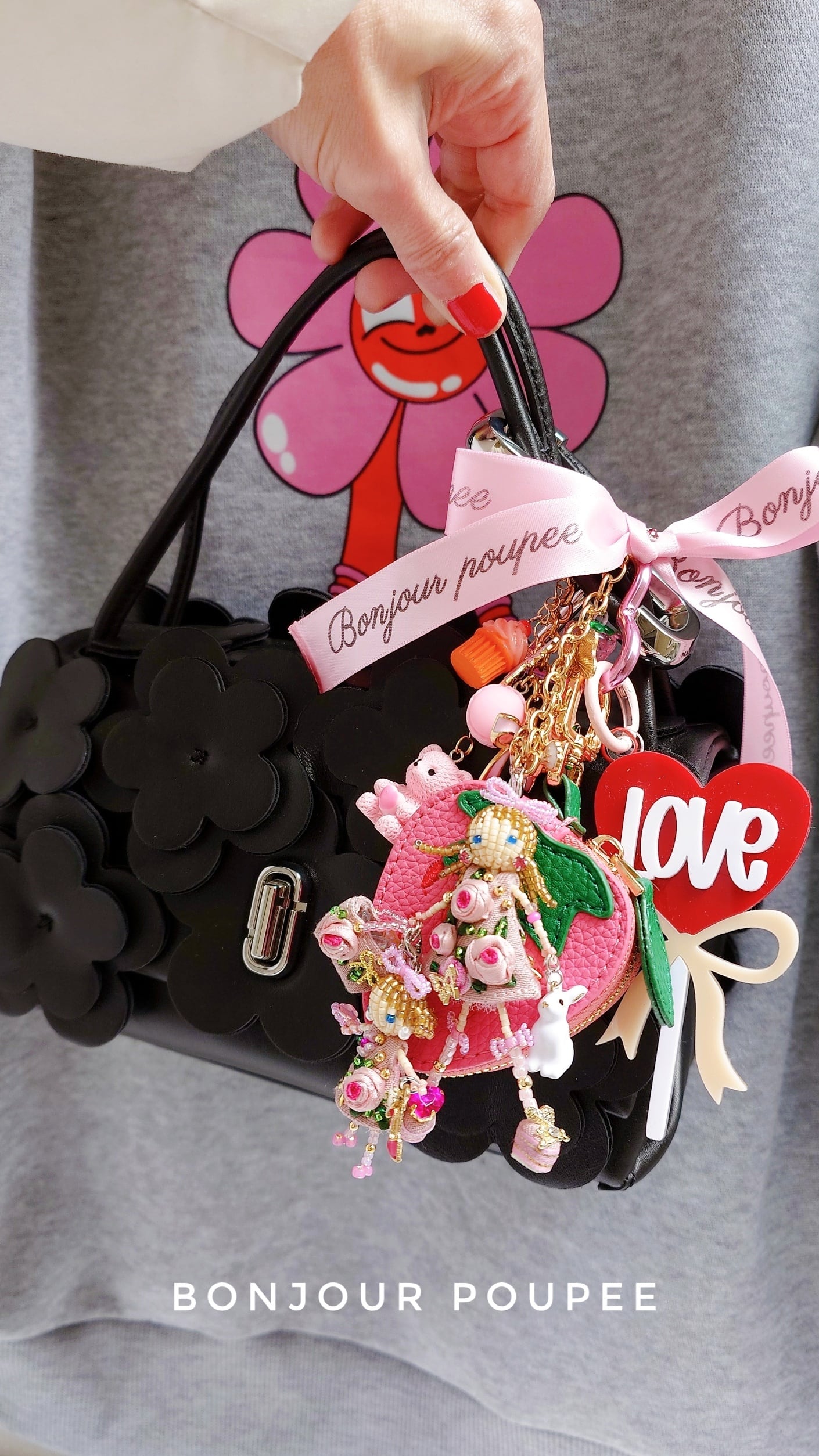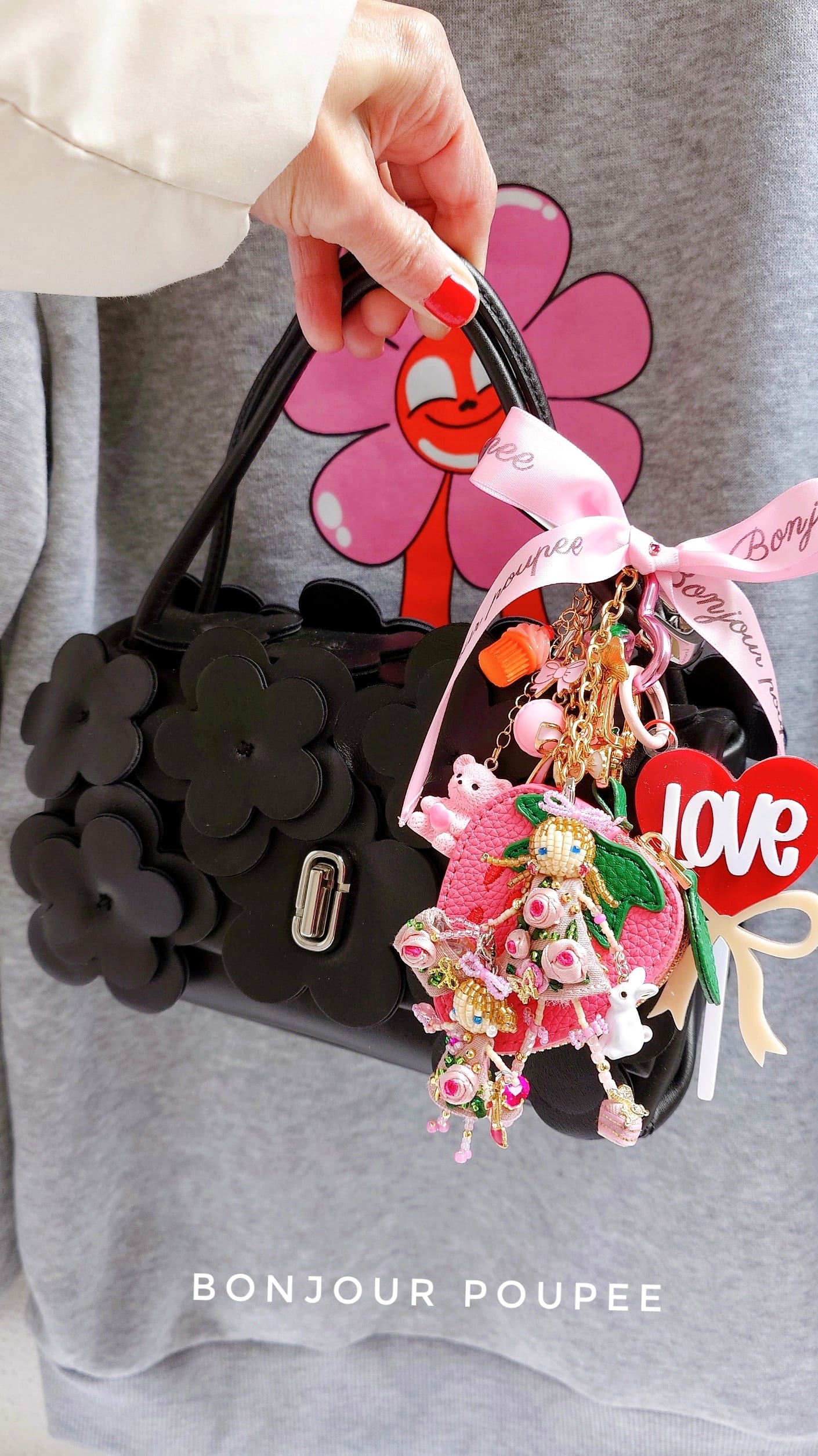 4.大ぶりのチャームはピンクローズちゃん親子に似合うようにカスタマイズして作りました♡