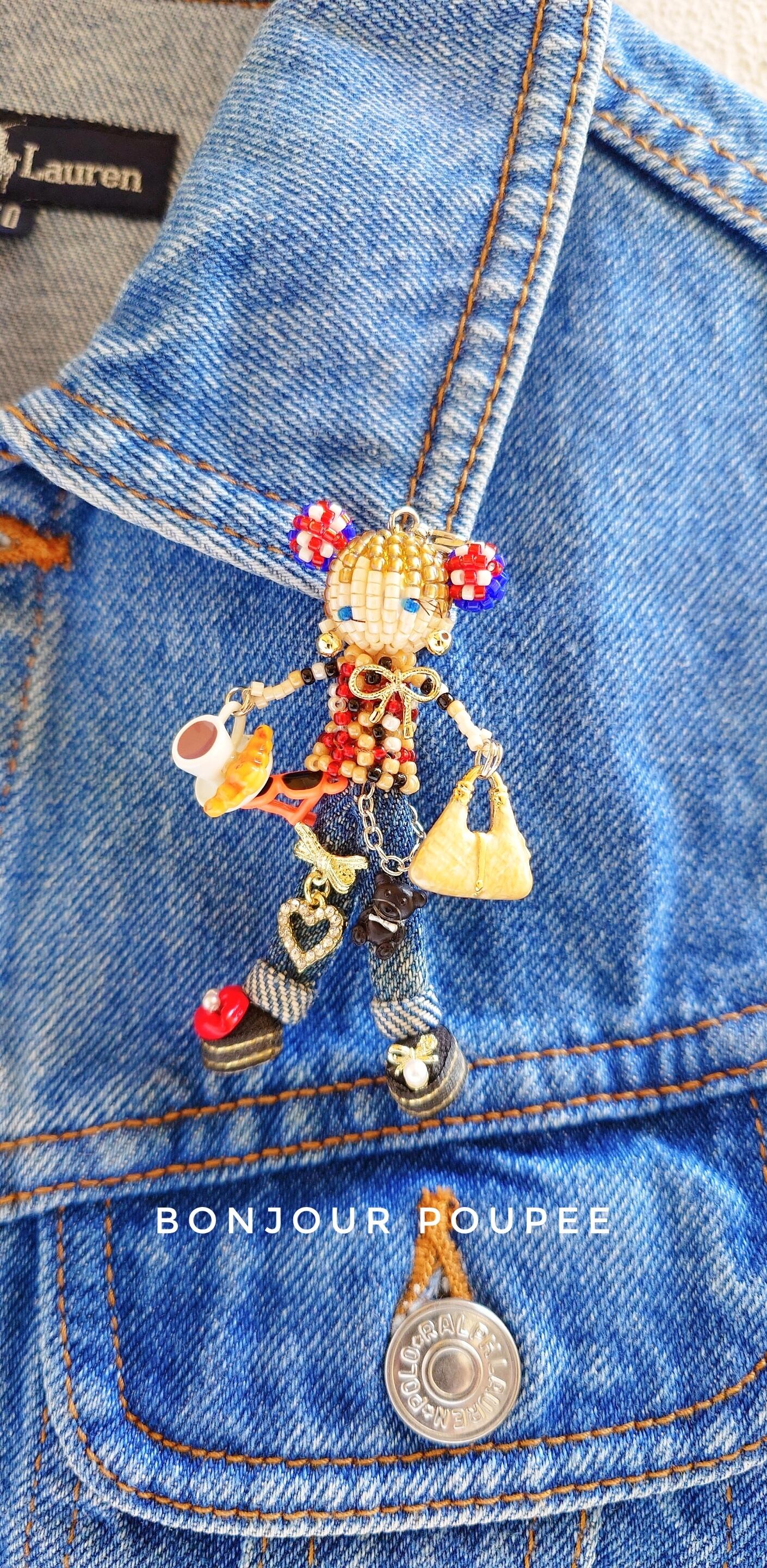 ♡ Bonjour poupeeが貴方の為に特別に作ら上げたビーズとデニムで作られたユニオンジャックのくまちゃんヘアの親子マドモアゼル ♡